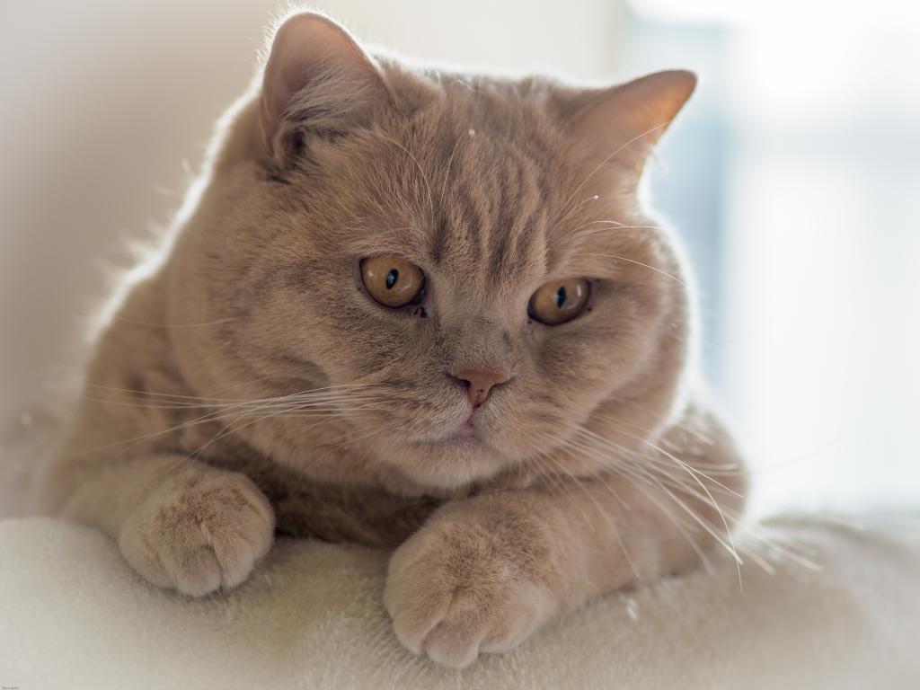 Обои Рыжая британская короткошёрстная кошка лежит на диване