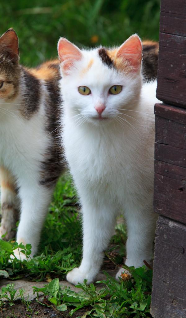 Обои Два кота выглядывают из-за стены