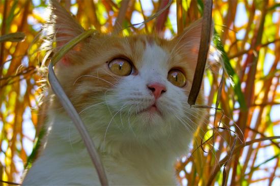 Обои Красивый котенок с желтыми глазами сидит в траве