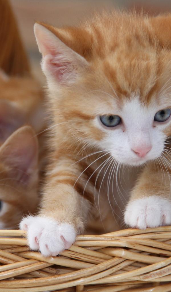 Обои Рыжие милые котята сидят в плетеной корзине