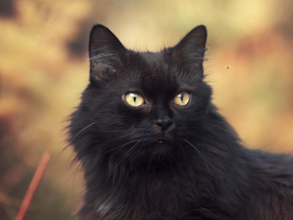 Обои Пушистый красивый черный кот крупным планом