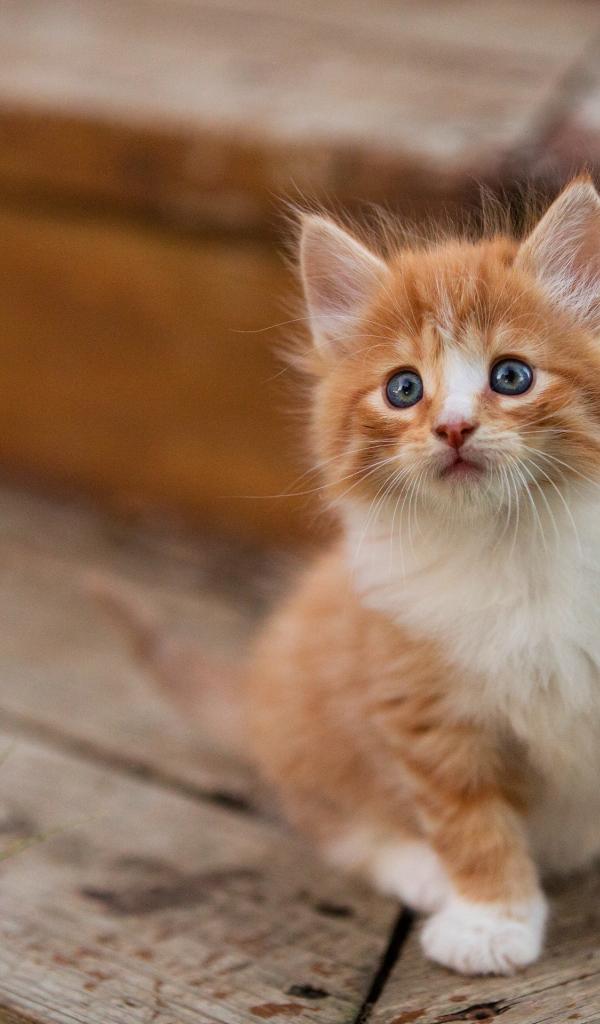Обои Маленький милый пушистый рыжий голубоглазый котенок
