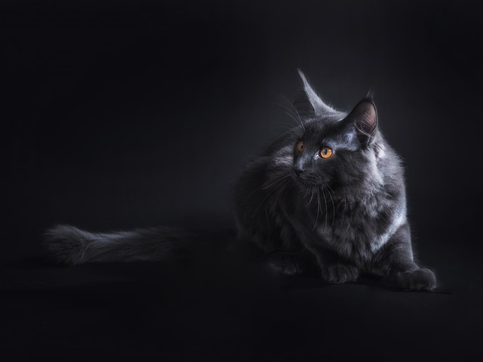 Обои Красивый серый кот породы мейн кун на сером фоне