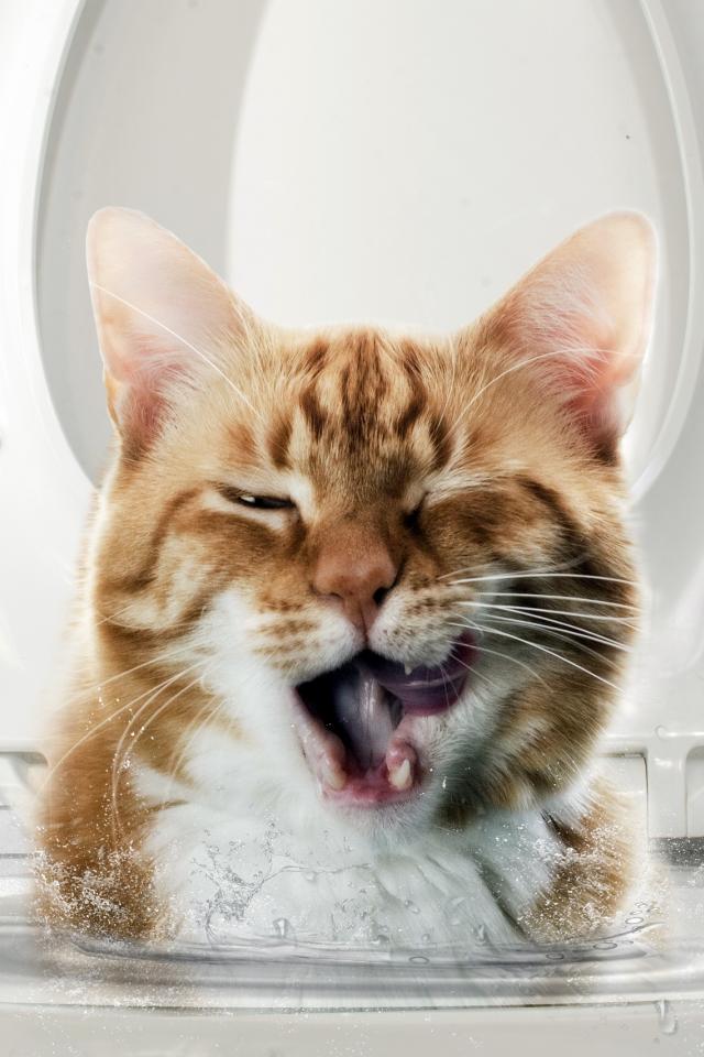 Обои Морда рыжего кота выглядывает с унитаза
