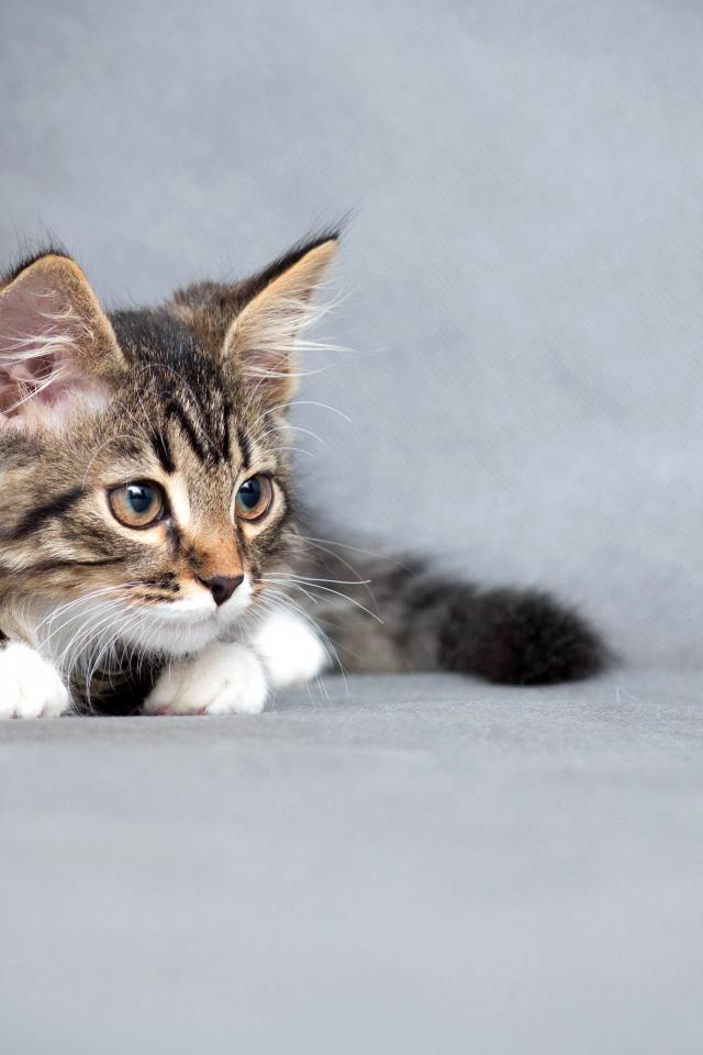 Обои Пушистый серый котенок на сером фоне