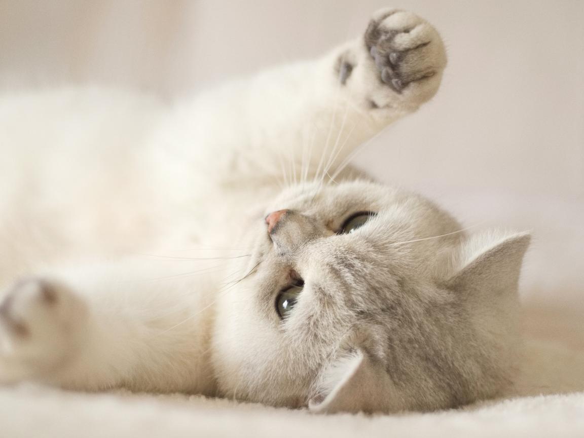 Обои Породистый кот играет на кровати