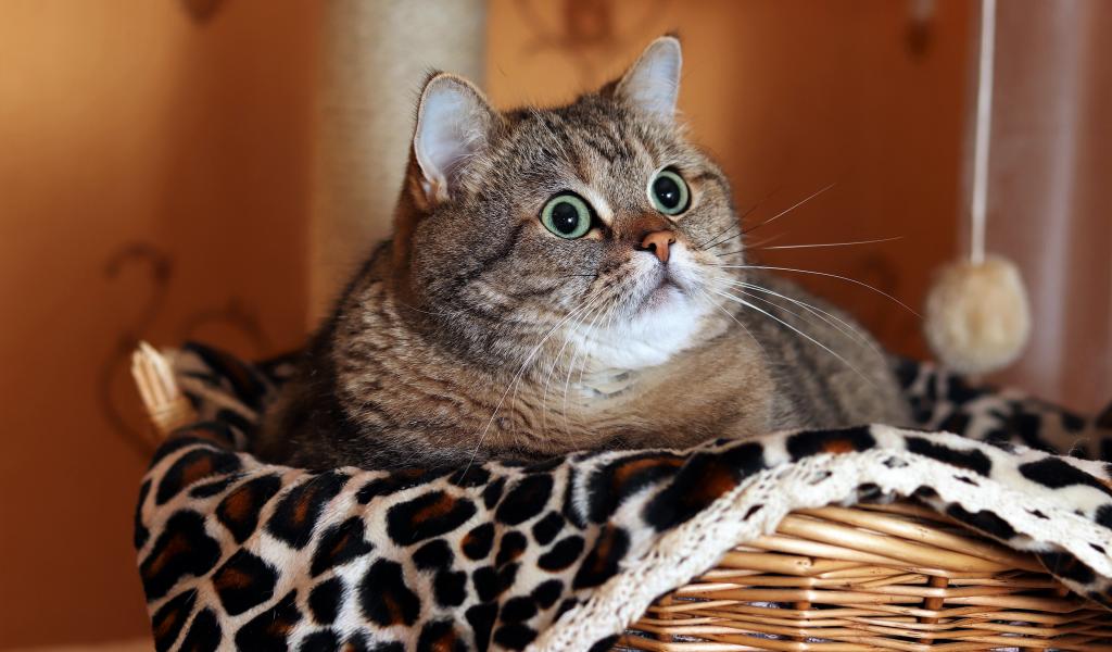 Обои Большой породистый серый кот лежит в корзине
