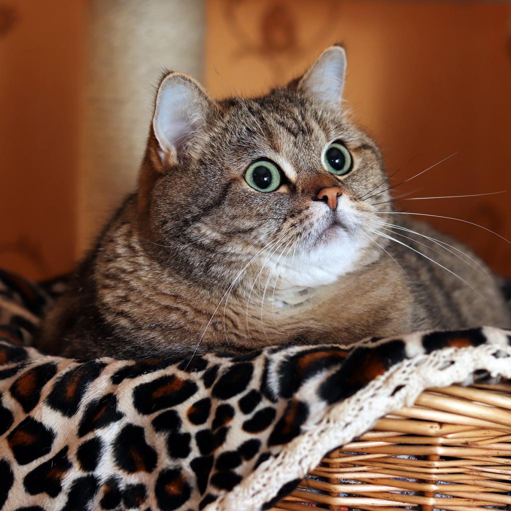 Обои Большой породистый серый кот лежит в корзине