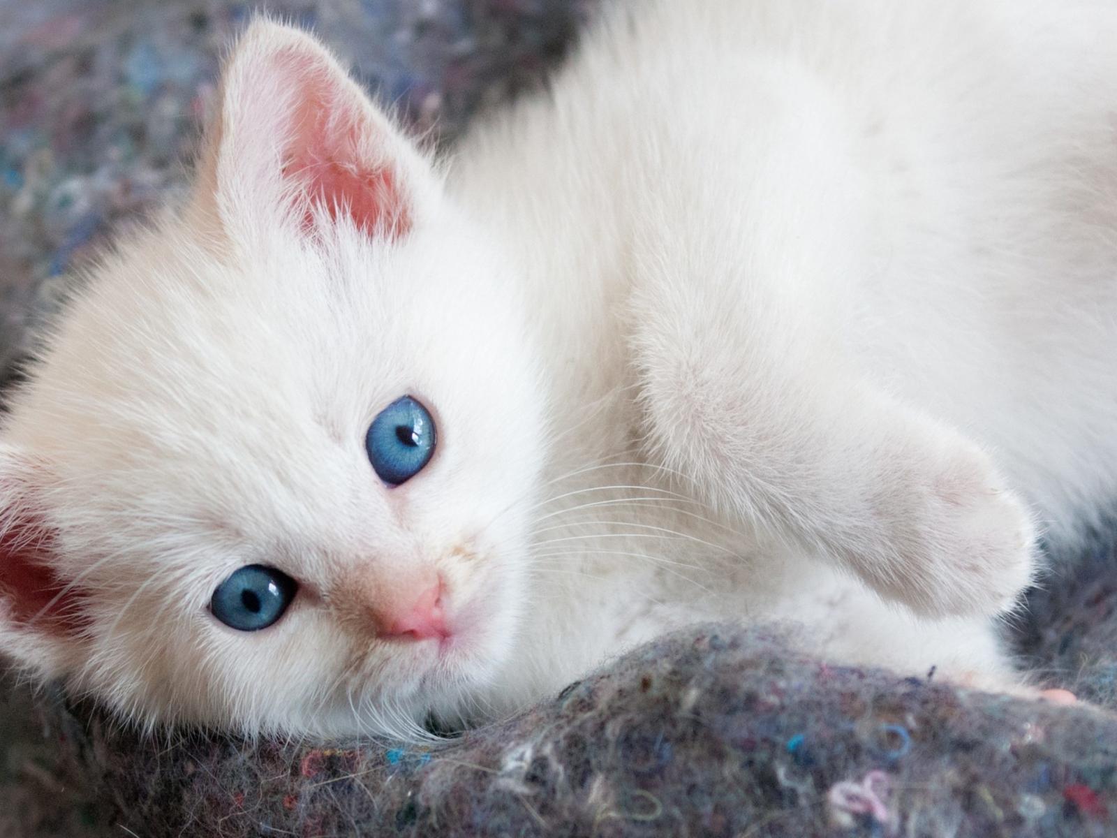 Обои Красивый белый котенок с голубыми глазами