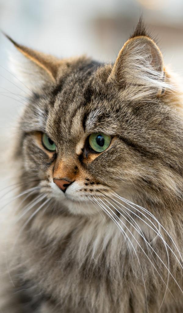 Обои Пушистый серый кот с кисточками на ушах