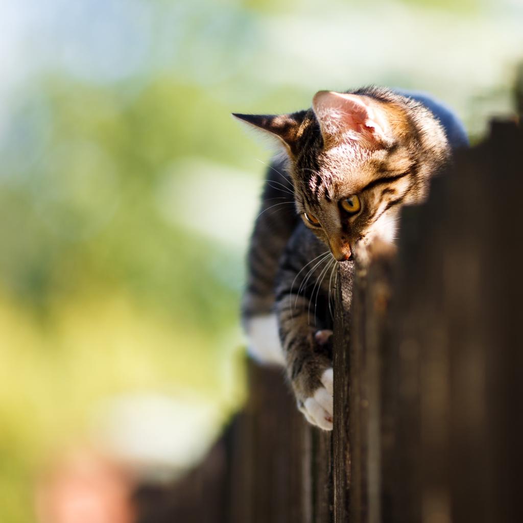 Обои Большой серый кот лежит на заборе