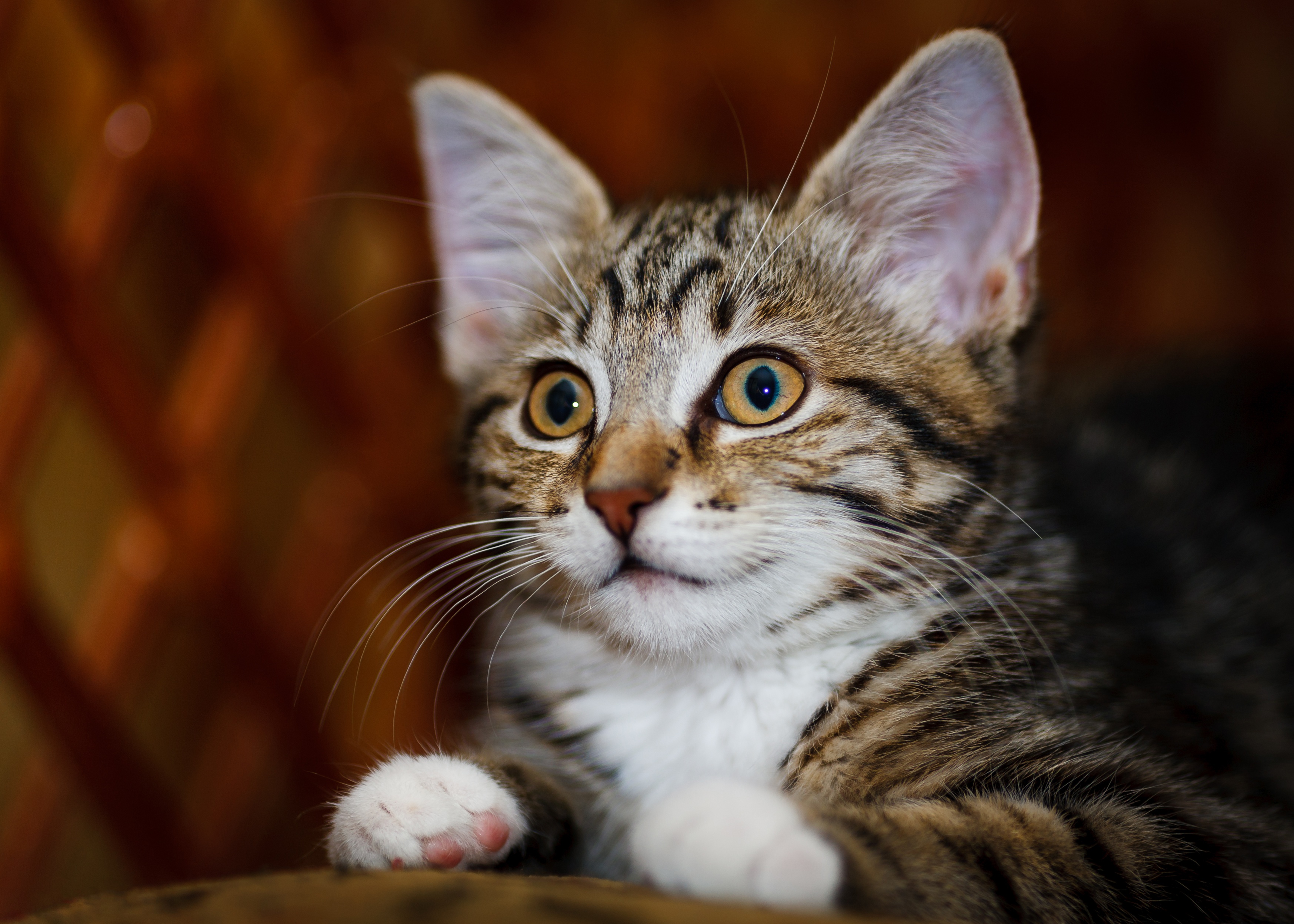 Обои Красивый серый котенок с белыми пятнами