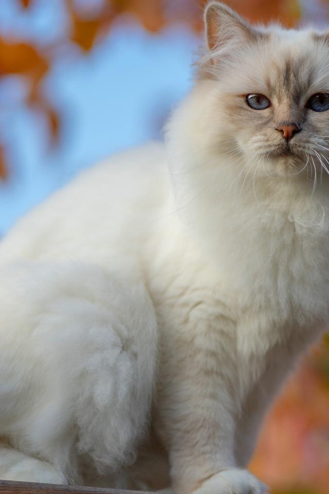 Обои Красивая породистая белая голубоглазая кошка
