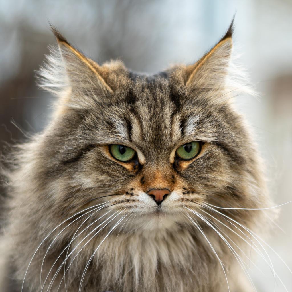 Обои Серьезный зеленоглазый пушистый кот с кисточками на ушах
