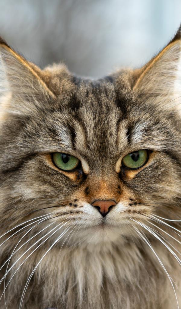 Обои Серьезный зеленоглазый пушистый кот с кисточками на ушах