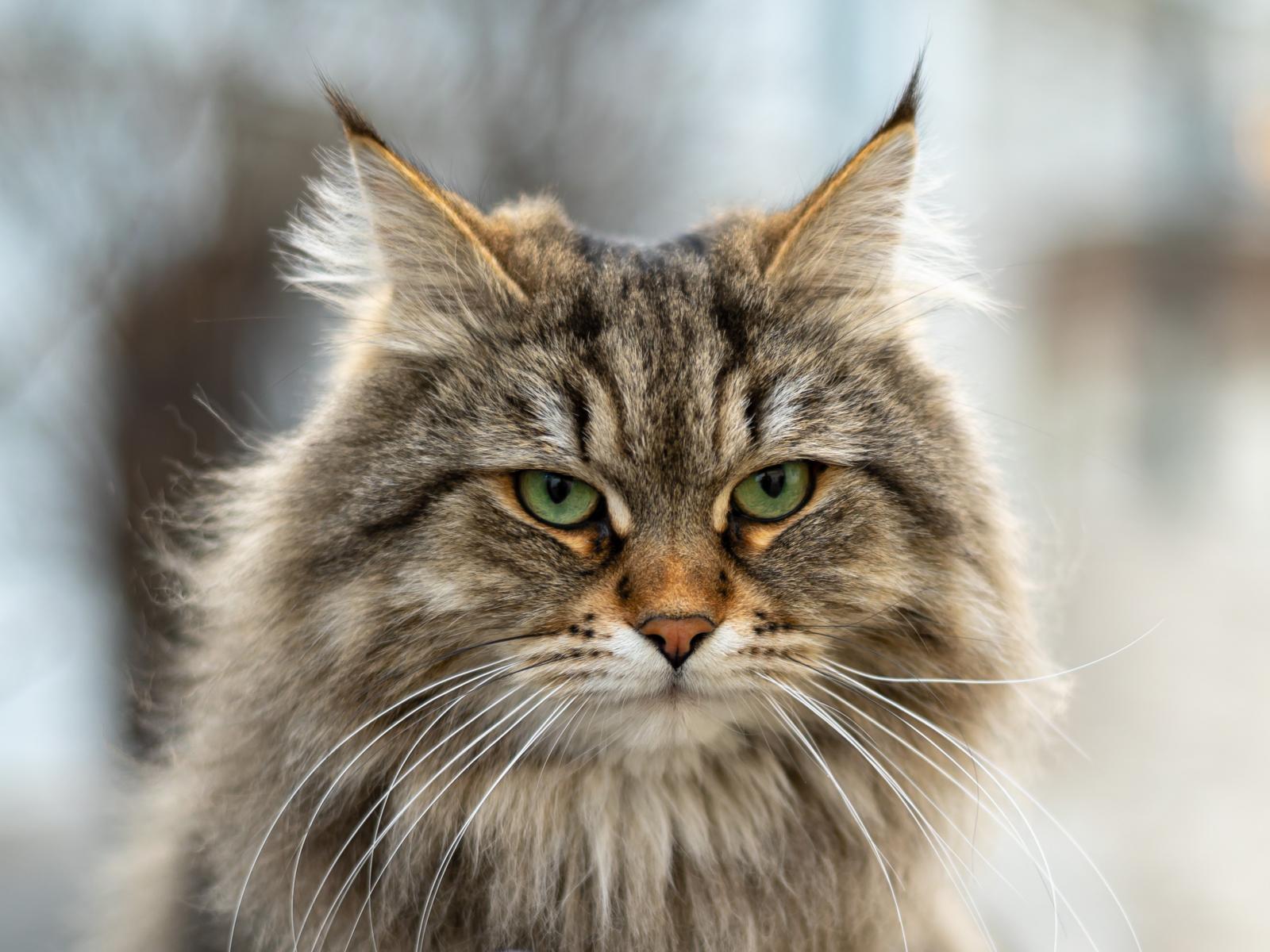 Обои Серьезный зеленоглазый пушистый кот с кисточками на ушах