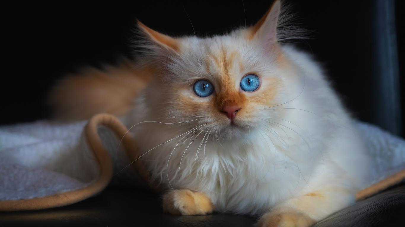 Обои Красивый породистый голубоглазый кот лежит на диване