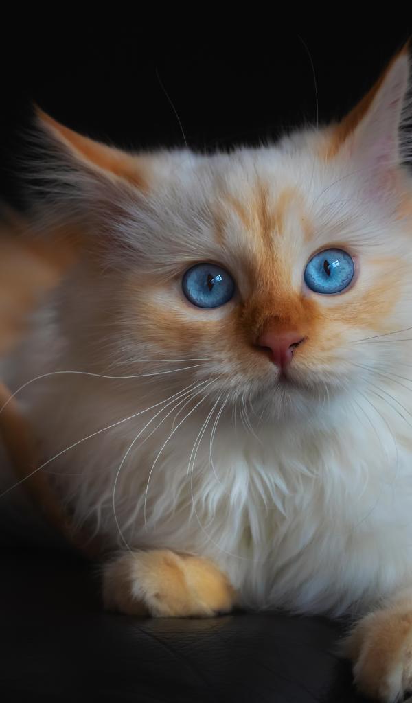 Обои Красивый породистый голубоглазый кот лежит на диване