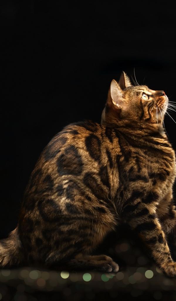 Обои Красивая дорогая бенгальская кошка на черном фоне