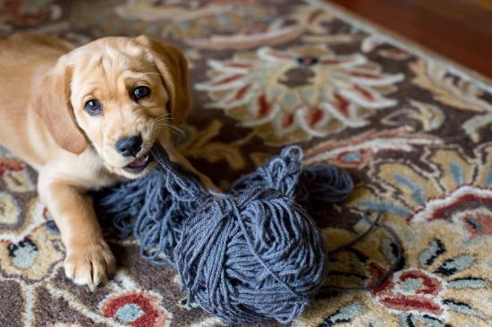 Обои Маленький щенок австралийской овчарки грызет обувь