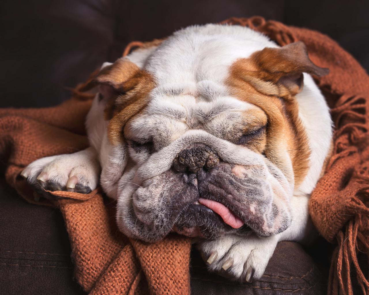 Обои Спящая собака породы английский бульдог