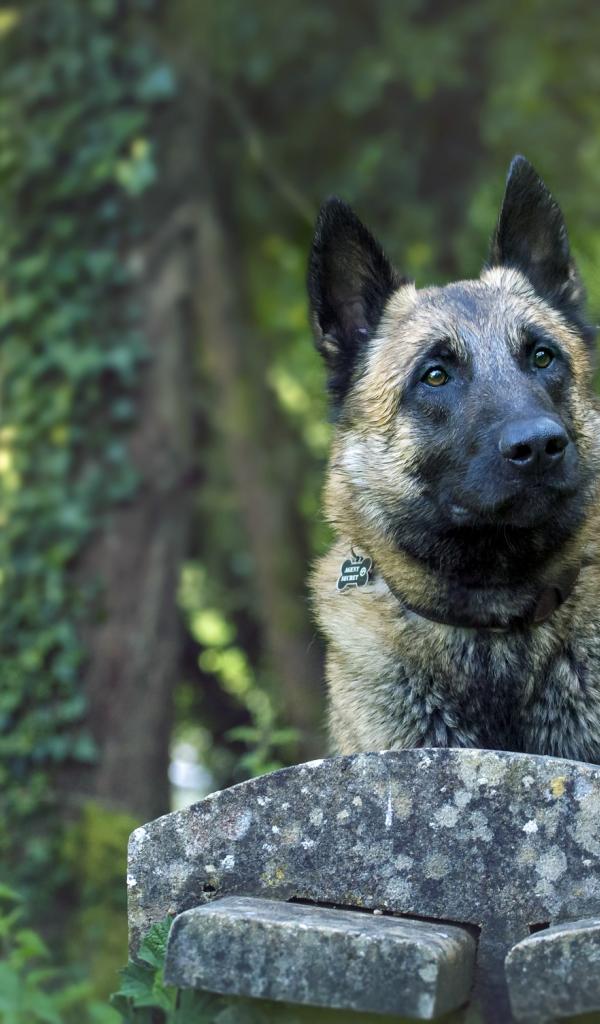 Обои Собака породы немецкая овчарка на лавке