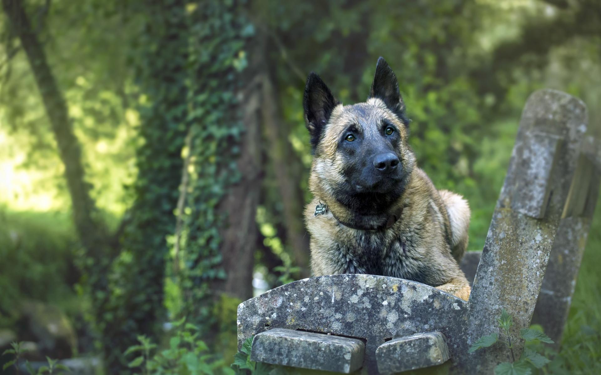 Обои Собака породы немецкая овчарка на лавке