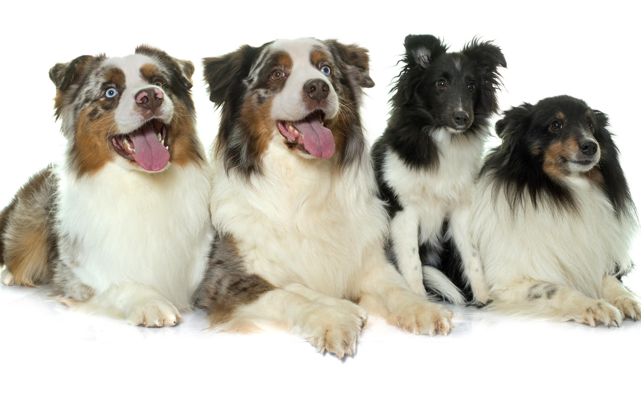 Обои Четыре собаки породы Австралийская овчарка на белом фоне