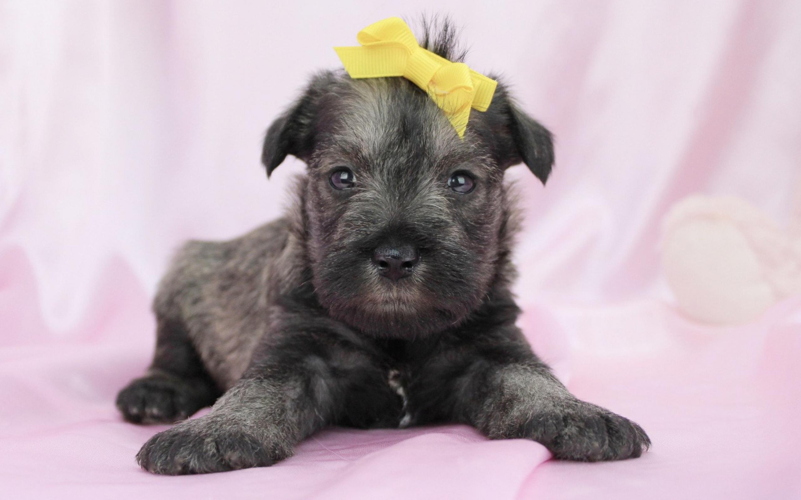 Обои Милый щенок шнауцера с бантом на голове