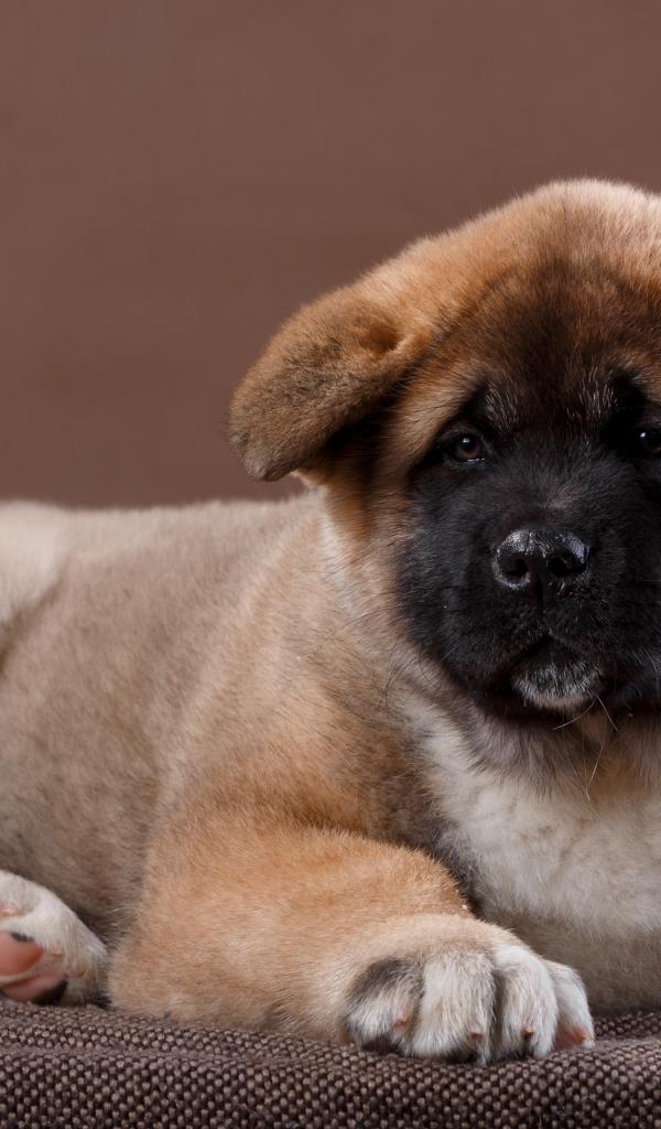 Обои Маленький щенок Сиба-ину на красном покрывале