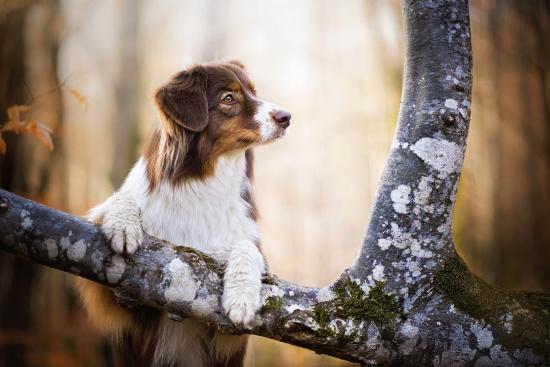Обои Заинтересованный взгляд собаки породы австралийская овчарка