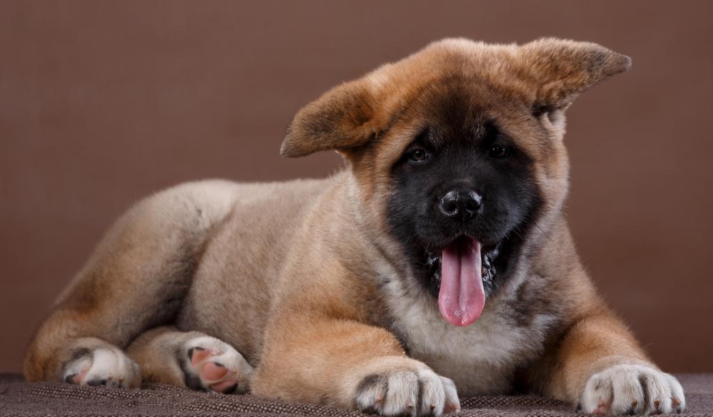 Обои Забавный маленький щенок акита - ину с высунутым языком