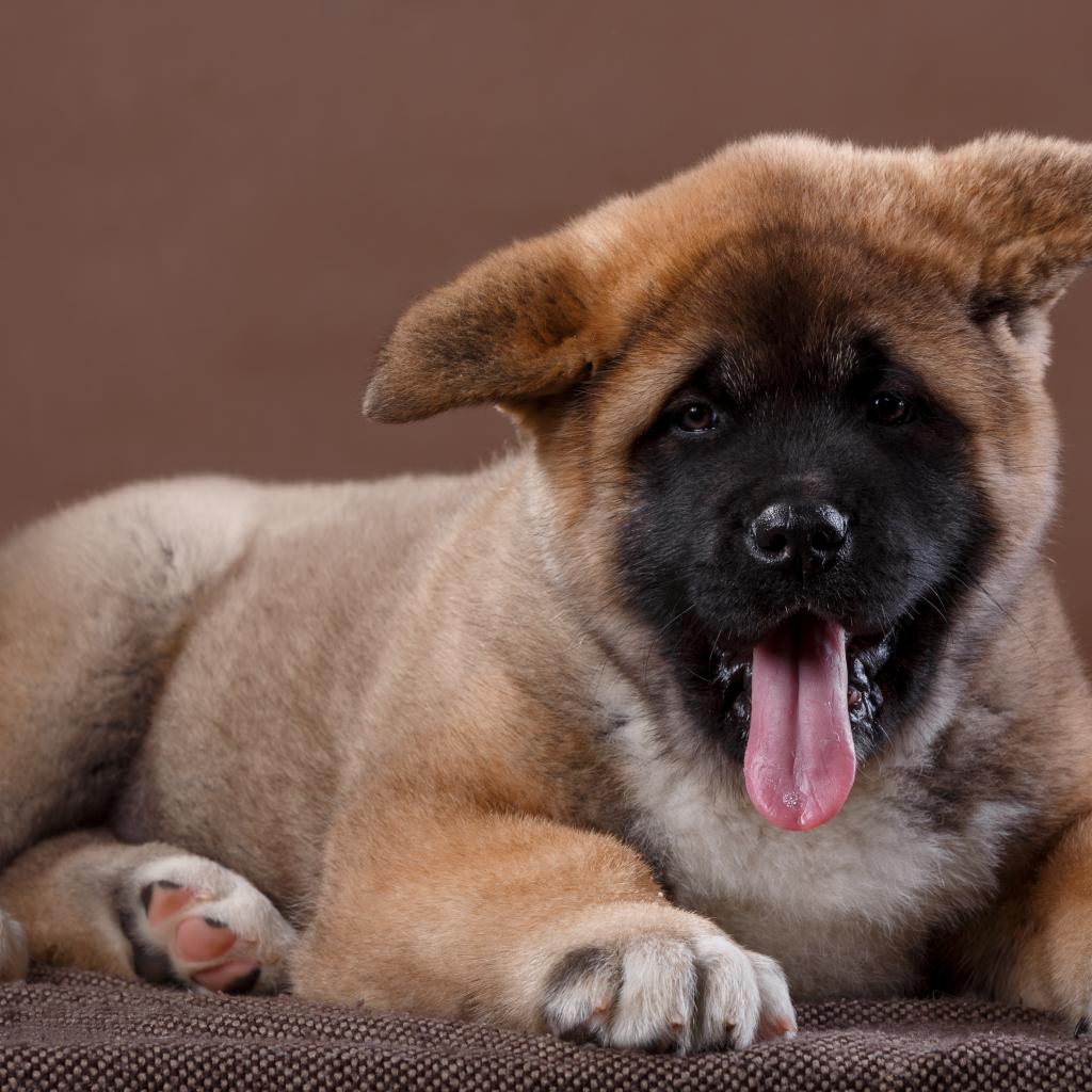 Обои Забавный маленький щенок акита - ину с высунутым языком
