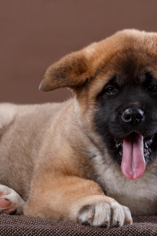Обои Забавный маленький щенок акита - ину с высунутым языком