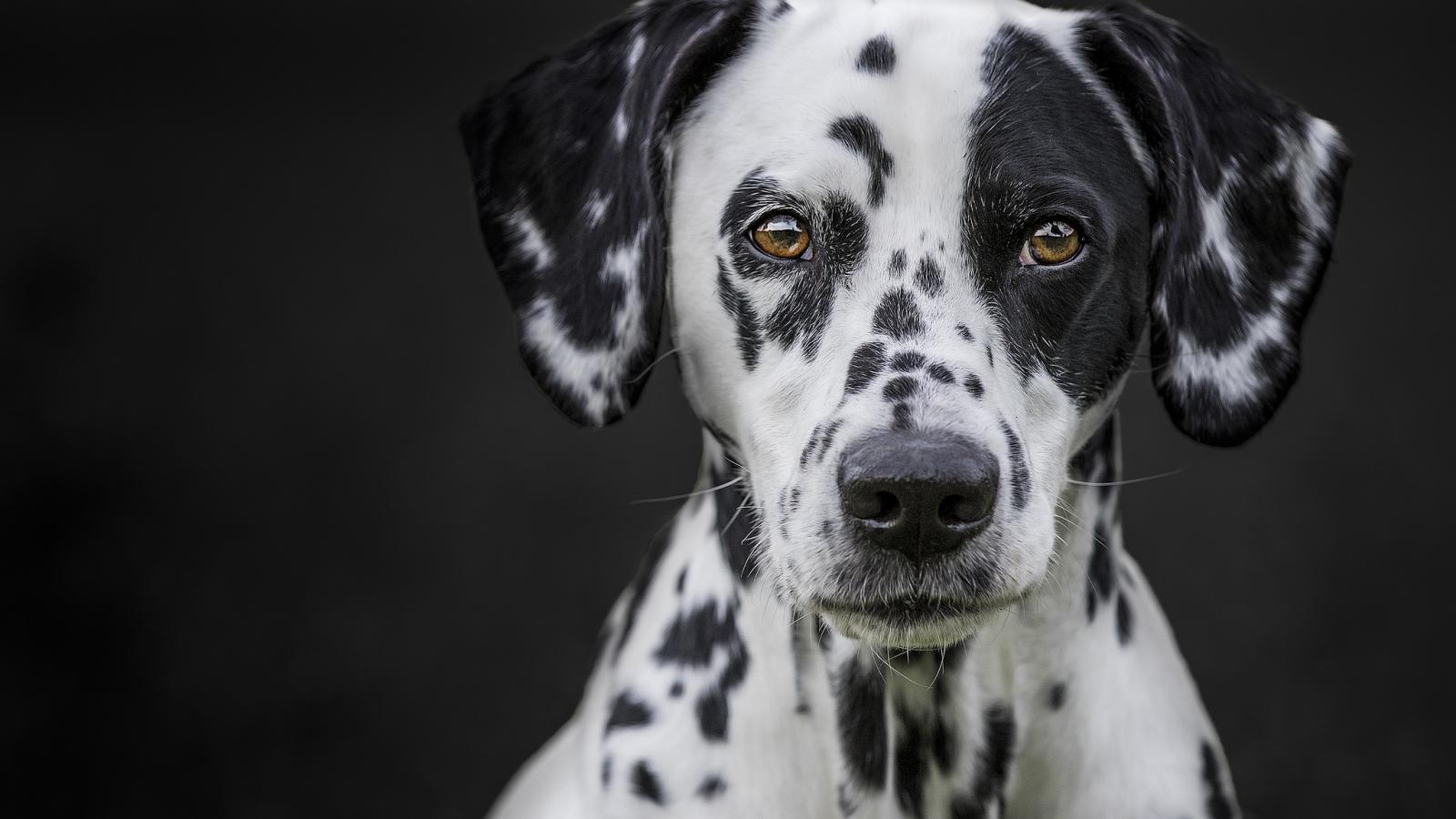 Обои Морда большого красивого далматина на черном фоне