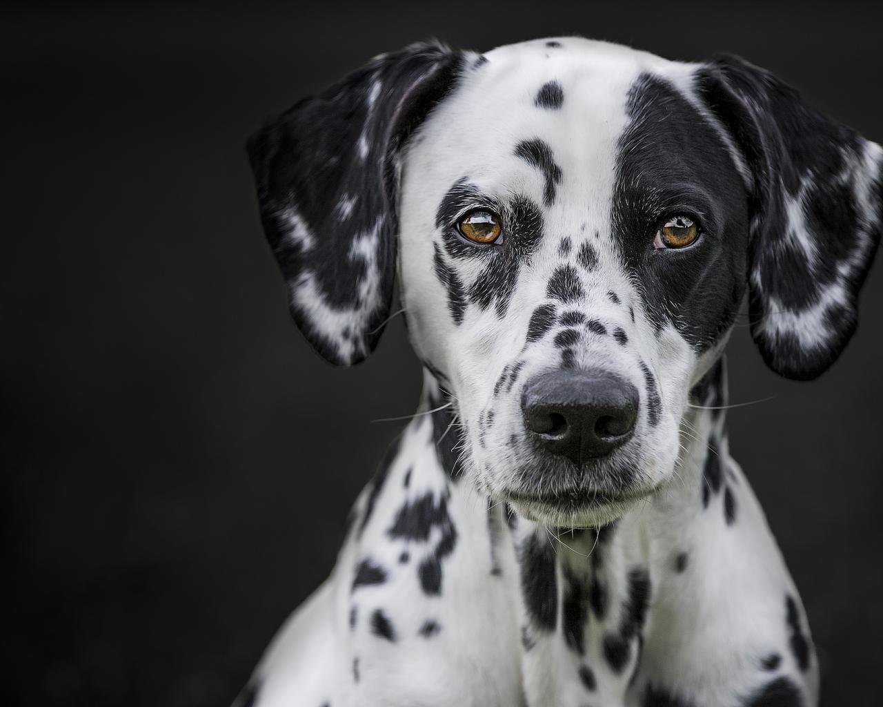 Обои Морда большого красивого далматина на черном фоне