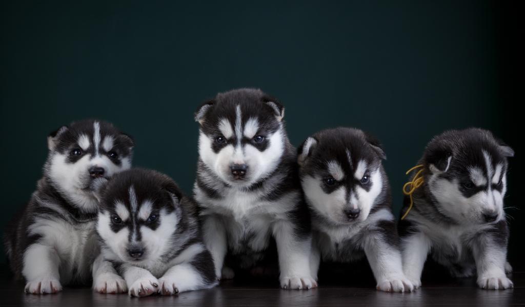 Обои Маленькие забавные щенки хаски