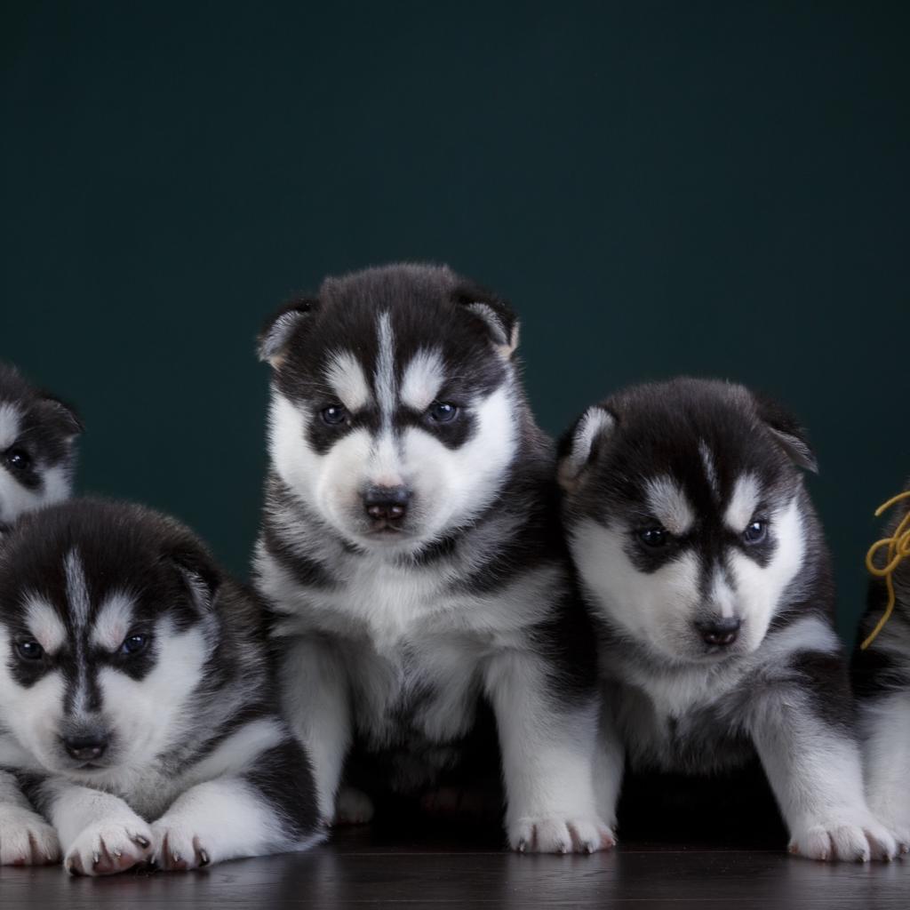 Обои Маленькие забавные щенки хаски