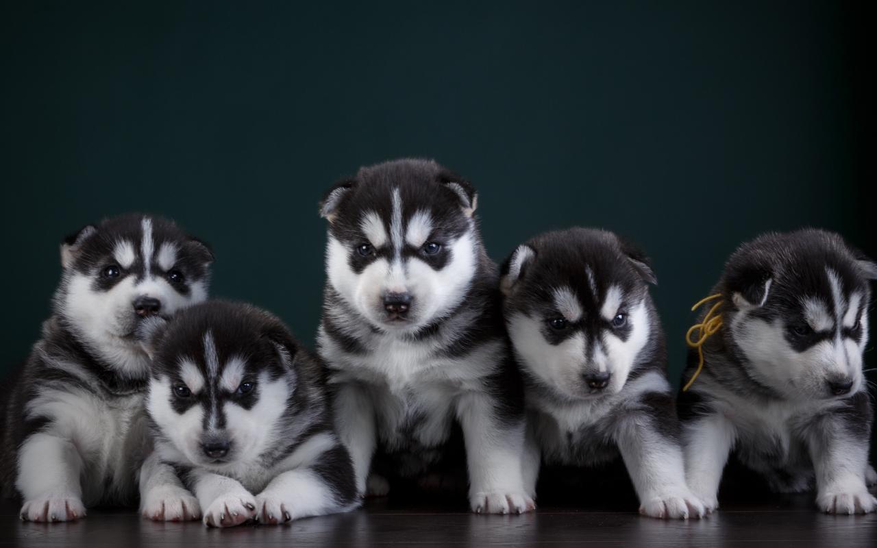Обои Маленькие забавные щенки хаски