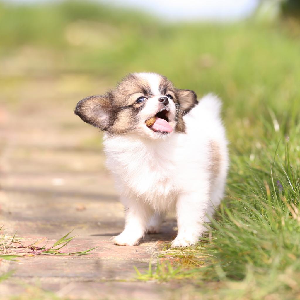 Обои Маленький забавный щенок породы Папильон