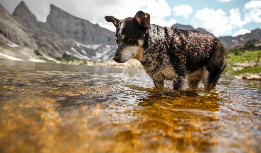 Обои Собака породы Австралийская овчарка стоит в воде