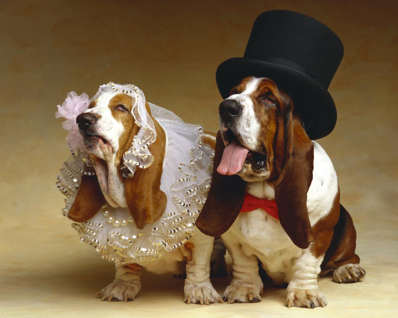 Обои Собака породы бассет хаунд с тыквой на сером фоне на Хэллоуин