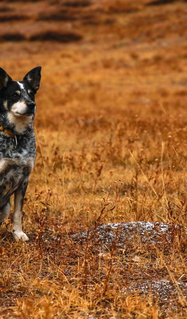 Обои Собака с умной мордой сидит на сухой траве