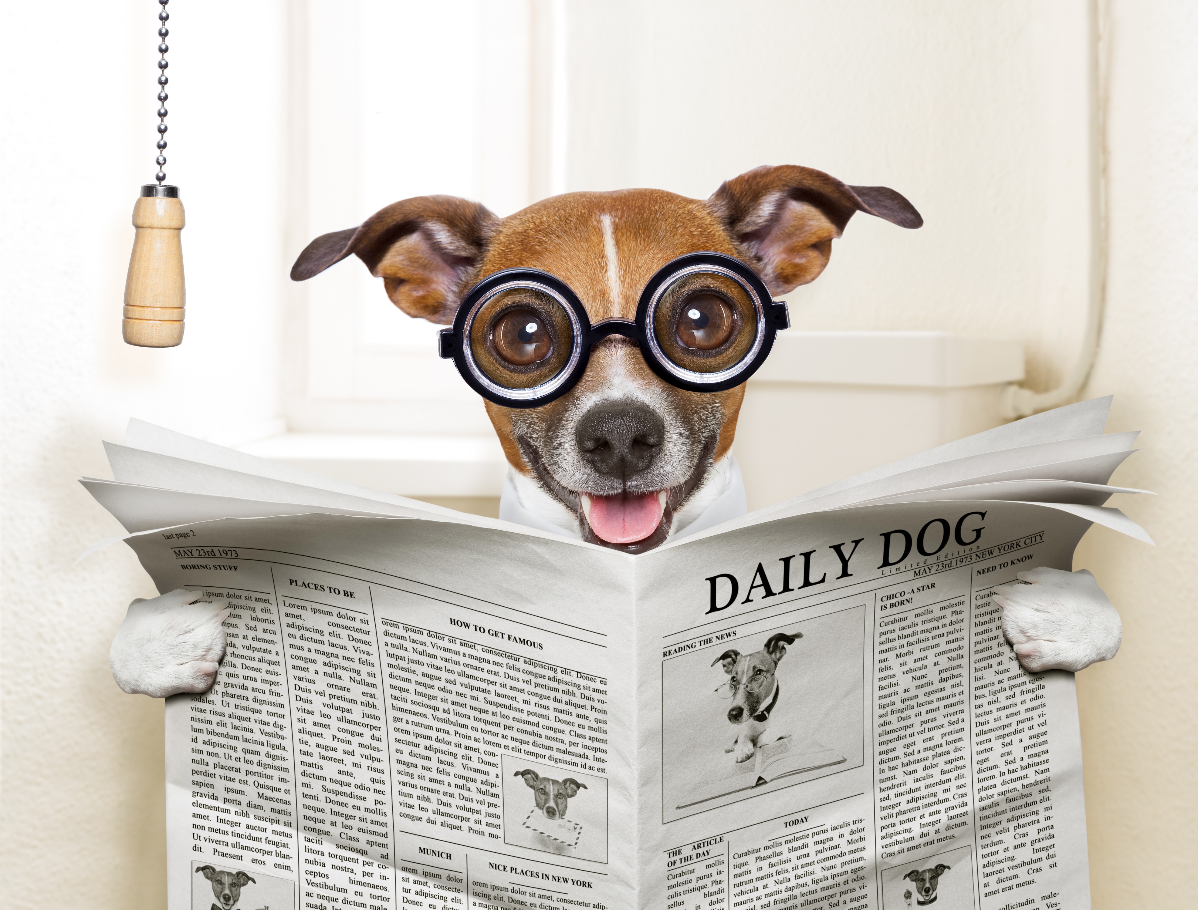 Обои Смешная собака в очках читает газету