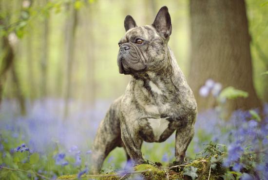 Обои Французский бульдог гуляет по лесу