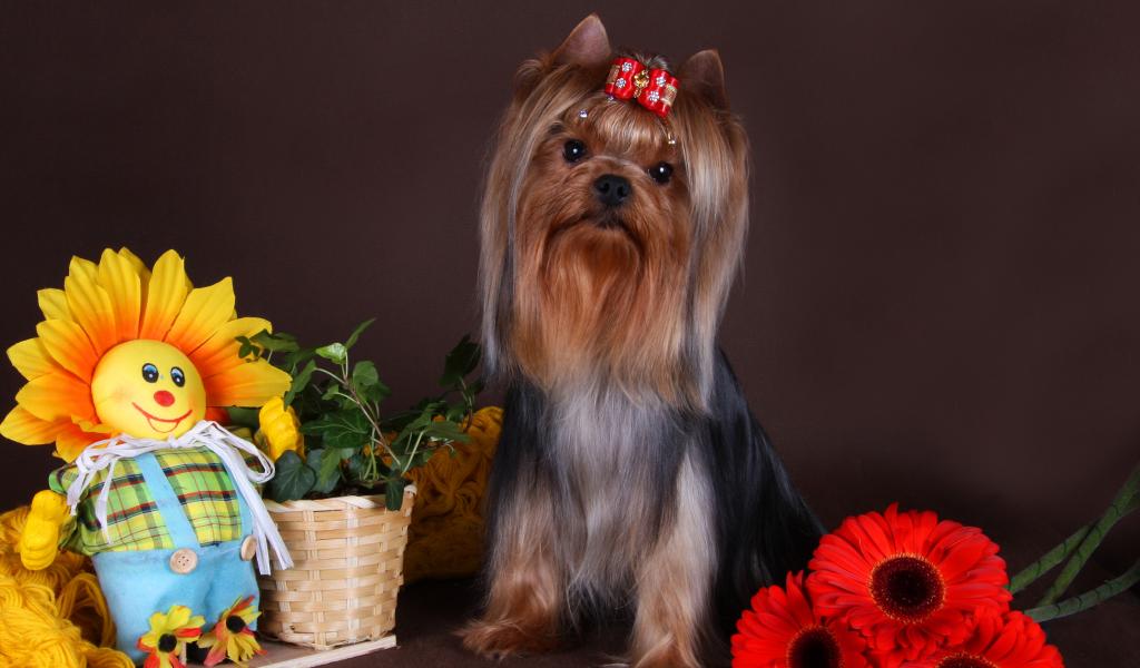Обои Йоркширский терьер с бантом на голове