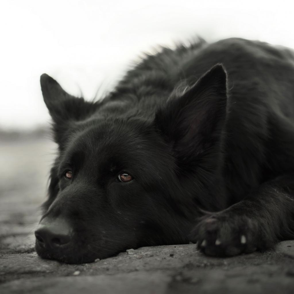 Обои Грустная немецкая овчарка лежит на земле
