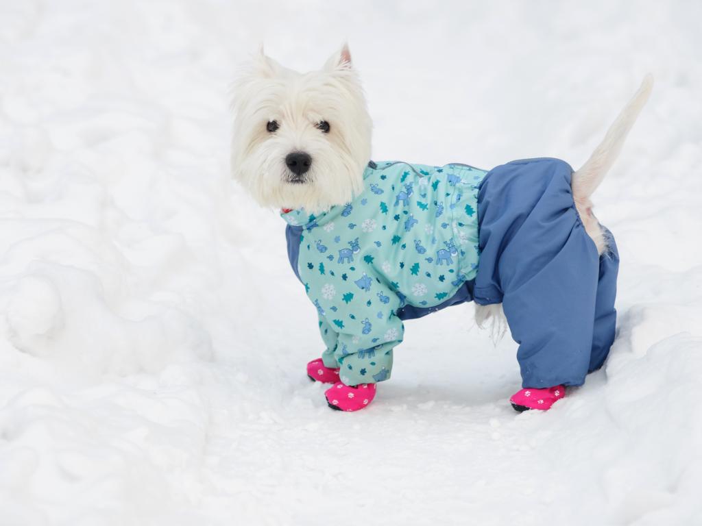 Обои Белый Вест хайленд уайт терьер в костюме на снегу