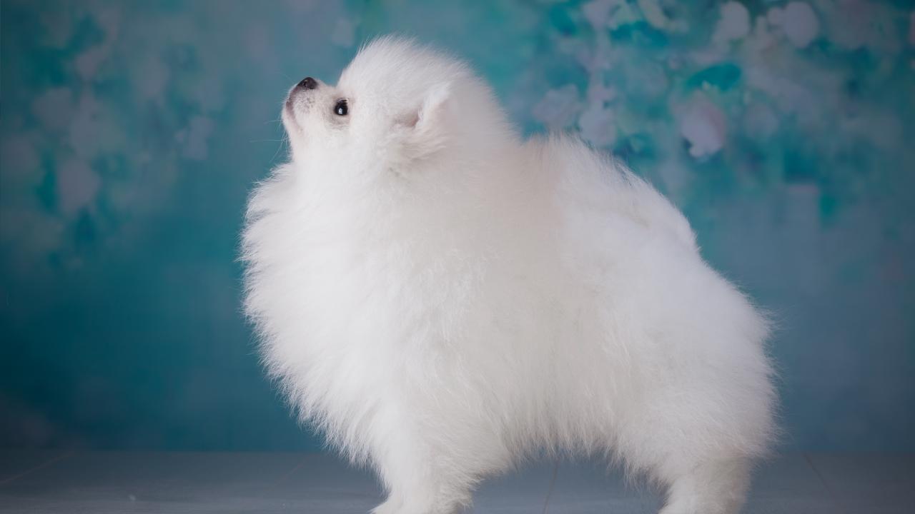 Обои Пушистый белый шпиц боком