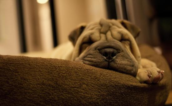Обои Маленький спящий щенок шарпея